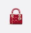 • The Lady Dior bag epitomizes the House's vision of elegance and beauty. Sleek and refined, the style is timeless. It is crafted in cherry red patent calfskin with Cannage stitching, creating the legendary and instantly recognizable quilted texture, while the pale gold-finish metal D.I.O.R. charms further embellish its silhouette. Featuring a removable chain shoulder strap, the miniature Lady Dior bag can be carried by