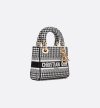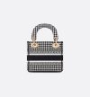 The Lady D-Lite bag combines classic elegance with House modernity. The style is fully embroidered with the black and white Houndstooth motif. A Christian Dior Paris signature accents the front, while pale gold-finish metal D.I.O.R. charms embellish and illuminate the silhouette. Equipped with a wide, reversible and removable embroidered shoulder strap, the miniature Lady D-Lite bag can be carried by hand or worn crossbody.