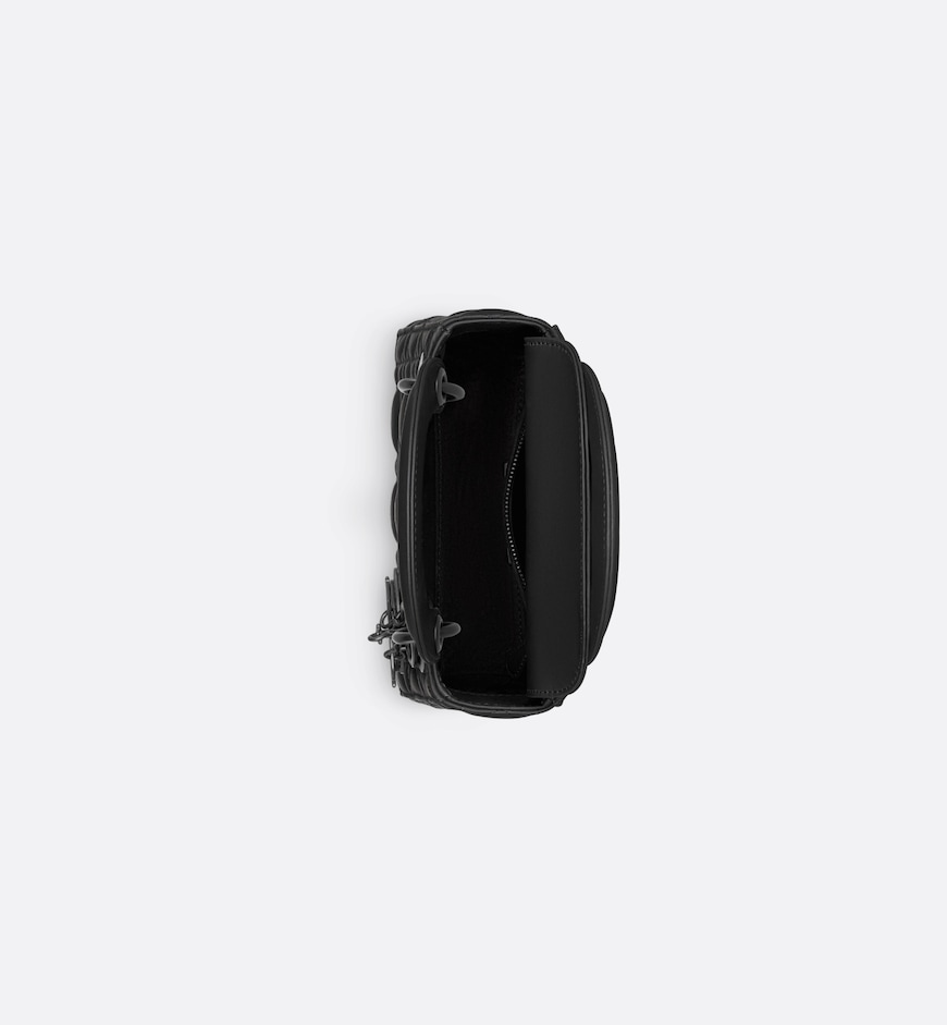 • The Lady Dior bag epitomizes the House’s vision of elegance and beauty. Sleek and refined, the timeless yet relevant style is crafted in black ultramatte calfskin with Cannage stitching, creating the instantly recognizable quilted texture. The tonal metal D.I.O.R. charms further embellish and illuminate its silhouette. Featuring a removable chain shoulder strap, the miniature Lady Dior bag can be carried by hand,