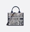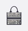 • Maria Grazia Chiuri's hallmark Dior Book Tote offers an original take on elegance. The refined style showcases a fresh interpretation of the House's iconic motif with the white and navy blue Toile de Jouy Sauvage embroidery and navy blue calfskin. Designed to keep all the daily essentials organized, the interior is equipped with a zip pocket and slip pockets. Featuring an adjustable and removable strap, the practical small tote exemplifies Dior's savoir-faire and can be carried by hand or worn over the shoulder.