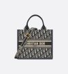 • Maria Grazia Chiuri's hallmark Dior Book Tote is offered in an elegant variation. The refined style showcases an iconic blue Dior Oblique embroidery and calfskin. Designed to keep all daily essentials organized, the interior is equipped with a zip pocket and slip pockets. Featuring an embroidered adjustable, removable strap, the practical small tote exemplifies Dior's savoir-faire and can be carried by hand or worn over the shoulder.