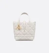 • The Dior Toujours vertical tote bag is distinguished by a modern and practical design. Crafted in latte calfskin with Macrocannage topstitching, it has a spacious interior compartment to accommodate all the essentials. Its thin leather strap closure keeps items secure, while the D of the CD Lock clasp twists to adjust the sides and enhance the bag's silhouette. The leather top handles are completed by a removable leather strap, allowing the small bag to be carried by hand, worn over the shoulder or crossbody.