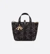 • The Dior Toujours vertical tote bag is distinguished by a modern and practical design. Crafted in black tweed with a white Cannage motif, it has a spacious interior compartment to accommodate all the essentials. Its thin leather strap closure keeps items secure, while the D of the CD Lock clasp twists to adjust the sides and enhance the bag's silhouette. The leather top handles are completed by a removable leather strap, allowing the small bag to be carried by hand, worn over the shoulder or crossbody.