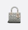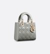 • The Lady Dior bag epitomizes Dior's vision of elegance and beauty. Sleek and refined, the timeless style is crafted in stone gray patent calfskin with Cannage stitching, creating the instantly recognizable quilted texture. Pale gold-finish metal D.I.O.R. charms further embellish its silhouette. The small Lady Dior bag features a thin, removable leather shoulder strap and can be carried by hand or worn crossbody.