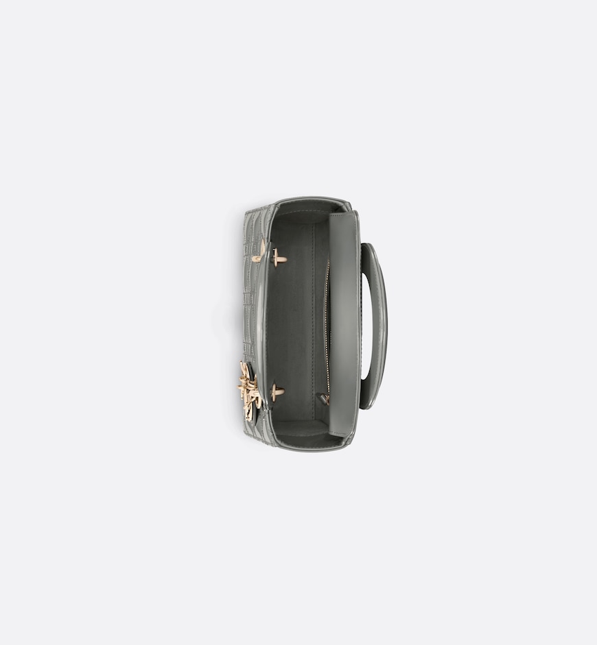 • The Lady Dior bag epitomizes Dior's vision of elegance and beauty. Sleek and refined, the timeless style is crafted in stone gray patent calfskin with Cannage stitching, creating the instantly recognizable quilted texture. Pale gold-finish metal D.I.O.R. charms further embellish its silhouette. The small Lady Dior bag features a thin, removable leather shoulder strap and can be carried by hand or worn crossbody.