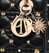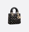 • The Lady Dior My ABCDior bag epitomizes Dior's vision of elegance and beauty. Sleek and refined, the creation is timeless. Constructed in black Cannage lambskin, the bag is accented by gold-tone resin pearls and gold-finish zodiac sign studs. Pale gold-finish metal D.I.O.R. charms embellish and illuminate the silhouette. The unique, small design may be personalized with badges placed on its shoulder strap and can be carried by hand or worn crossbody.