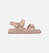 The Dioract sandal presents a modern silhouette in nude calfskin quilted with the Cannage motif. The style features an anatomically shaped insole made with ultralightweight and comfortable leather. Self-fastening straps further enhanced by a gold-finish metal Dior signature on the upper strap complete the design. The sandal will lend a contemporary touch to any look.
