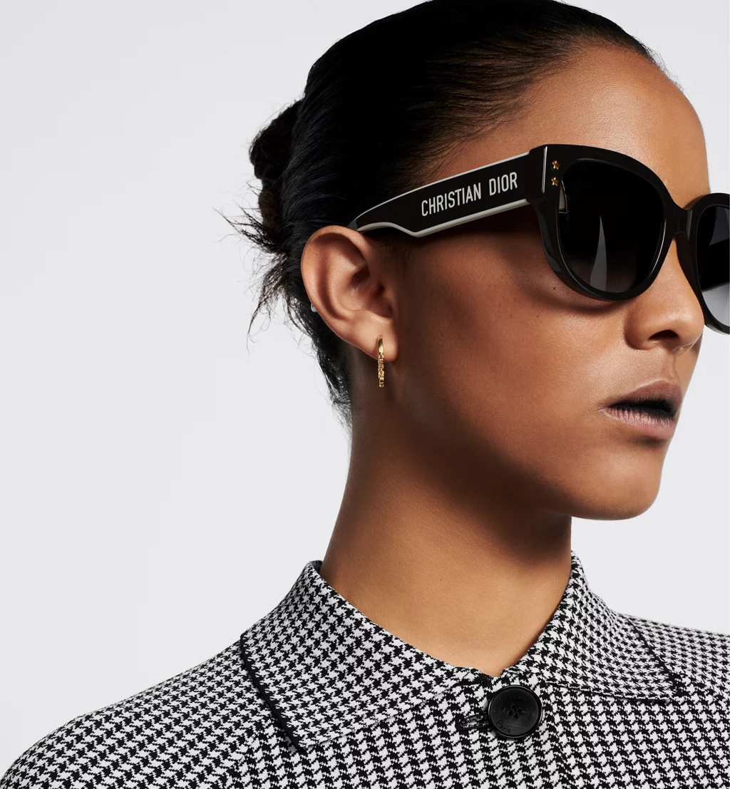 Black and white acetate temples with a double-layer effect and Christian Dior signature