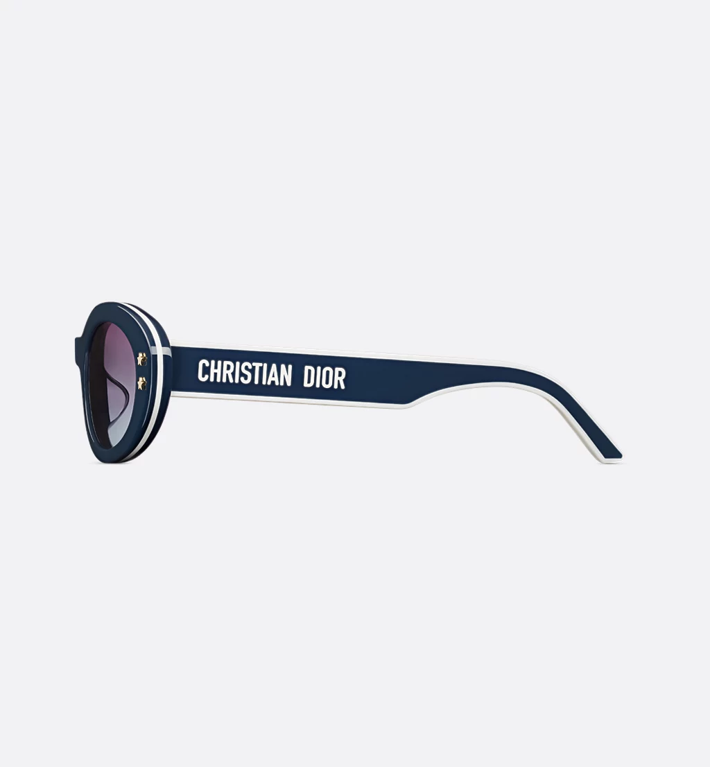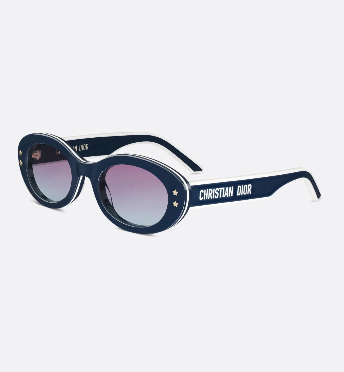 • The DiorPacific B4I sunglasses are a modern low oval design. The blue triple-layer effect acetate frame is adorned with gold-finish star details on the front, while the acetate temples present a blue and white double-layer effect, together with the Christian Dior signature. Completed by gradient purple-to-blue lenses, the new essential style will lend a contemporary touch to any look.