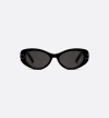 • The DiorSignature B8U sunglasses elevate the iconic House line with a modern and elegant oval shape. The graphic frame in black acetate showcases temples with the Christian Dior Paris signature and ruthenium-finish metal lines that extend onto the front. Completed by gray lenses, the new must-have will lend looks a Dior touch.