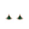 The Divas’ Dream series of 18K rose gold earrings pay tribute to charming women with a unique Roman spirit. Inspired by the elegant temperament of women, the exquisite fan-shaped pattern is interpreted with malachite with a pavé diamond edge: the unique iconic element is reminiscent of the mosaic pattern of the Baths of Caracalla in Rome, paying tribute to Italian aesthetics.