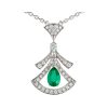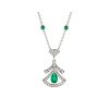 The DIVAS’DREAM necklace embodies Italian elegance and charm, unleashing the power of women with a mysterious and unforgettable temperament. The delicate fan-shaped pattern full of feminine charm draws inspiration from the colorful mosaic decoration of the Baths of Caracall in Rome, highlighting the historical origins of Bvlgari and the "Eternal City" Rome with the essence of Italian elegance and charm. The exquisite and lightweight hollow design reinterprets the classic shape of the series, interpreting the charm between reality and illusion. Divas' Dream series white 18K gold hollow necklace, inlaid with 1 pear-shaped emerald, round brilliant-cut emerald, 1 round brilliant-cut diamond, decorated with pavé diamonds. Given the handmade craftsmanship, the size and weight data of jewelry works are for reference only.