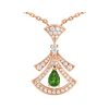 The Divas' Dream necklace in 18K rose gold is a subtle expression of joyful femininity, with a colorful design that interprets the iconic fan motif. The signature aesthetic of the collection is presented in a diamond-set openwork pendant, with a pear-shaped green tourmaline at the center adding a dynamic touch to the jewellery, reflecting Bvlgari's Roman heritage. This timeless and elegant piece celebrates the beauty of nature. Divas' Dream necklace in 18K rose gold, set with a pear-shaped green tourmaline and brilliant-cut diamonds. Due to the handcrafted nature of the jewellery, the dimensions and weights of the pieces are for reference only.