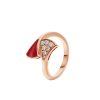 The Divas’ Dream rings embody Italian elegance and unleash the power of women with a mysterious and unforgettable temperament. The charming and exquisite rings are decorated with fan-shaped patterns, inspired by the mosaic decoration of the Baths of Caracalla in Rome, and highlight the historical origins of Bvlgari and the “Eternal City” Rome with modern and fashionable design and exquisite gemstone combination. Divas’ Dream rings in 18K rose gold, inlaid with carnelian and decorated with pavé diamonds.