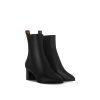 Smooth calf leather complements the sleek, minimalist design of the Donna ankle boot. Influenced by the classic styles of the Seventies, this model comes on a low block heel, which is also covered in leather. A back loop in Monogram canvas adds a refined finishing touch, while a side zip ensures easy fitting.