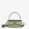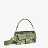 Iconic medium Baguette bag, created in 1997 which went on to become the leading It bag. Versatile and with timeless appeal, it features the iconic underarm design inspired by the French Baguette bread from which it takes its name. Hand-embroidered with green sequins of different shapes and sizes. Embellished with tone on tone calfskin details and decorated with an FF clasp. Featuring a front flap, magnetic clasp, brown satin-lined internal compartment with a zipper pocket and gold-finish metalware. The bag can be carried by hand, or worn either on the shoulder or cross-body thanks to the handle and shoulder strap, both detachable. Made in Italy