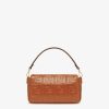 Iconic medium Baguette bag made of soft, brown nappa leather with a three-dimensional texture embossed FF motif. Decorated with an FF clasp.