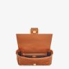 Iconic medium Baguette bag made of soft, brown nappa leather with a three-dimensional texture embossed FF motif. Decorated with an FF clasp. Featuring a front flap, magnetic clasp, internal compartment with zip pocket and vintage gold-finish metalware. The bag can be carried by hand, or worn either on the shoulder or cross-body thanks to the handle and shoulder strap, both detachable. Made in Italy