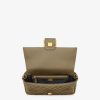 Featuring a front flap, magnetic clasp, internal compartment lined in fabric with zip pocket and vintage gold-finish metalware.