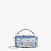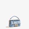 Iconic small Baguette bag, embroidered with light blue sequins of different shapes and sizes with a denim-effect finish. Trimmed in light blue calfskin and embellished with an FF clasp.
