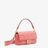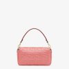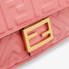 Iconic medium Baguette bag, created in 1997 which went on to become the leading It bag. Versatile and with timeless appeal, it features the iconic underarm design inspired by the French Baguette bread from which it takes its name. Made of soft, pink nappa leather with a 3D-effect embossed iconic FF motif and embellished with an FF clasp. Featuring a front flap, magnetic clasp, internal compartment lined with fabric and with a zip pocket and gold-finish metalware. The bag can be carried by hand, or worn either on the shoulder or cross-body thanks to the handle and shoulder strap, both detachable