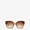 Square Fendi First eyeglasses in honey-color acetate. Temples with oversize diagonal F motif in gold-colored metal. Brown gradient lenses.