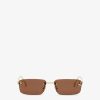 Rectangular Fendi First Crystal eyeglasses with a rimless structure in gold-colored metal. Brown lenses with micro F in crystals. Adjustable nose pads.