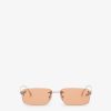 Rectangular Fendi First Crystal eyeglasses with a rimless structure in palladium-colored metal. Apricot-colored lenses with micro F in crystals. Adjustable nose pads.