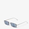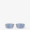 Rectangular Fendi First Crystal eyeglasses with a rimless structure in palladium-colored metal. Blue lenses with Pequin motif and micro F in crystals. Adjustable nose pads.