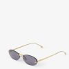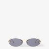 Oval Fendi First Crystal glasses with a gold-colored rimless metal structure. Blue lenses embellished with micro F in crystals. Adjustable nose pads.
