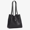 Medium Origami bag made of black full-grain leather. The style recalls the creativity and dual nature of Fendi with an innovative design that can be transformed. Thanks to eight concealed magnets the bag can be styled as a shopper bag or bucket bag by folding it origami style.