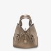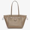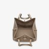 Medium Origami bag made of dove grey full-grain leather. The style recalls the creativity and dual nature of Fendi with an innovative design that can be transformed. Thanks to eight concealed magnets the bag can be styled as a shopper bag or bucket bag by folding it origami style. It comes with a key case charm with the word Fendi in metal. Lined inner compartment and gold-finish metalware. It can be carried by hand or worn on the shoulder thanks to 2 leather handles.