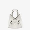Medium Origami bag made of white full-grain leather. The style recalls the creativity and dual nature of Fendi with an innovative design that can be transformed. Thanks to eight concealed magnets the bag can be styled as a shopper bag or bucket bag by folding it origami style. It comes with a key case charm with the word Fendi in metal. Lined inner compartment and gold-finish metalware. It can be carried by hand or worn on the shoulder thanks to 2 leather handles.