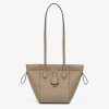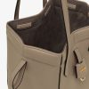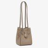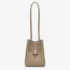 Mini Origami bag made of dove grey full-grain leather. The style recalls the dual nature and creativity of Fendi with an innovative design that can be transformed: the ingenious closure with eight magnets means the bag can be folded, origami-style, transforming it from a bucket bag – when the magnets come together in the middle with a magic clasp – into a shopper by gently pulling the short shoulder straps on each side. It comes with a key case charm with the word Fendi in metal. Lined inner compartment and gold-finish metalware. It can be carried by hand or worn on the shoulder thanks to 2 leather handles. Holds a 6.7-inch smartphone, Mini Trifold card holder or wallet, keys and lipstick.