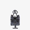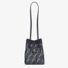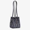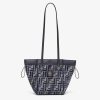 Mini Origami Bag. The style recalls the duality and creativity of Fendi with an innovative and transformable design: the ingenious closure with eight magnets means the bag can be folded, origami-style, transforming it from a bucket bag, when the magnets come together in the middle with a magic clasp, into a shopper by gently pulling the leather ties on the short shoulder straps on each side. Made of chenille with the iconic FF motif in dark blue gradient tones and dark blue calfskin trims. It comes with a key case charm with the words “Fendi Roma” in metal. Lined inner compartment and gold-finish metalware. It can be carried by hand or worn on the shoulder thanks to the two calfskin handles. Holds a 6.7-inch smartphone, Mini Trifold card holder or wallet, keys and lipstick.