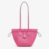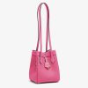 Mini Origami bag made of fuchsia full-grain leather. The style recalls the dual nature and creativity of Fendi with an innovative design that can be transformed: the ingenious closure with eight magnets means the bag can be folded, origami-style, transforming it from a bucket bag – when the magnets come together in the middle with a magic clasp – into a shopper by gently pulling up the short shoulder straps on each side. It comes with a key case charm with the word Fendi in metal. Lined inner compartment and gold-finish metalware. It can be carried by hand or worn on the shoulder thanks to 2 leather handles.