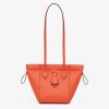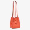 Mini Origami bag made of red full-grain leather. The style recalls the dual nature and creativity of Fendi with an innovative design that can be transformed: the ingenious closure with eight magnets means the bag can be folded, origami-style, transforming it from a bucket bag – when the magnets come together in the middle with a magic clasp – into a shopper by gently pulling the short shoulder straps on each side. It comes with a key case charm with the word Fendi in metal. Lined inner compartment and gold-finish metalware. It can be carried by hand or worn on the shoulder thanks to 2 leather handles.