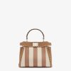 Fendi Peekaboo Mini Selleria and beige Pequin stripe fabric bag with 336 hand-sewn topstitches