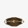Leather covered aluminium bar to lighten the weight of the bag, gold-finish clasp and metalware.