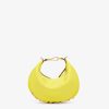 Mini hobo bag made of soft, acid yellow leather, embellished with vintage gold metal FENDI lettering.