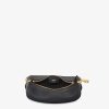Mini hobo bag made of soft black leather, embellished with vintage gold metal FENDI lettering. Zipper closure with fabric-lined internal compartment, gold-finish metalware. It can be carried by hand thanks to the hook and clip to use as a handle, or worn cross-body using the thin, adjustable, detachable shoulder strap. Holds a 6.2-inch smartphone, Mini Trifold card holder or wallet, keys and lipstick.