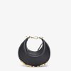 Mini hobo bag made of soft black leather, embellished with vintage gold metal FENDI lettering.