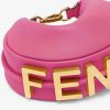 Mini hobo bag made of soft fuchsia leather, embellished with vintage gold metal FENDI lettering.