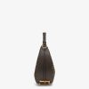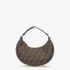 Made of jacquard fabric with the iconic FF motif in brown, decorated with vintage gold-finish metal FENDI lettering on the base, visible when wearing the bag under the arm.