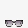 Oversized square FF Diamonds glasses in black acetate. Temples with functional FF Diamonds hinges in gold-colored metal. Gray gradient lenses. Made in Italy