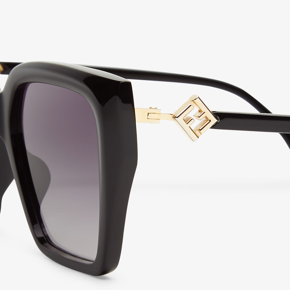 Oversized square FF Diamonds glasses in black acetate. Temples with functional FF Diamonds hinges in gold-colored metal. Gray gradient lenses. Made in Italy
