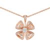Blooming in the Eternal City of Rome, the Fiorever collection draws its design inspiration from the charming four-petal flower cherished by the Romans as a symbol of happiness and joy. Made up of two words rich in meaning: Fiore (flower in Italian) and forever (eternity in English), Fiorever celebrates the Romans’ love of life with a passionate and stunning design. Bvlgari’s precious classic floral motif is adorned with four diamond-paved hollow petals in rose gold, surrounding a sparkling central diamond, which blooms with timeless brilliance. Fiorever necklace in 18K rose gold, set with a diamond and adorned with diamond pavé