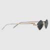 For Cruise 2024, the eyewear selection is defined by archival silhouettes reinterpreted with a contemporary touch. Here, a gold-toned geometric metal frame is decorated with a Double G cut-out detail on the temples.