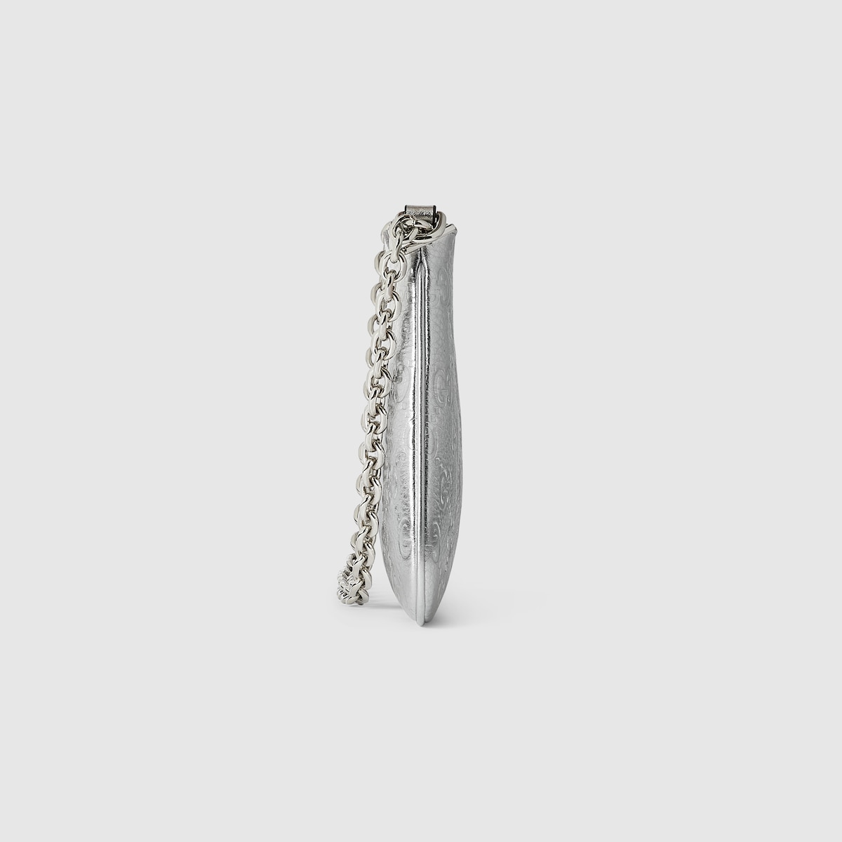 The new GG Emblem collection reinterprets the House’s history of elegance and craftsmanship. This medium shoulder bag is crafted from GG grainy leather and comes with a chain strap as well as a detachable leather shoulder strap.