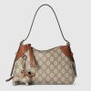 The new GG Emblem collection reinterprets the House’s history of elegance and craftsmanship. This small shoulder bag features numbered notches on the adjustable shoulder strap, inspired by the equestrian world.